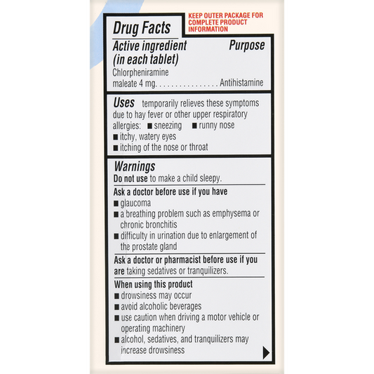 Foster & Thrive Allergy Relief Chlorpheniramine Maleate Tablets, 4 mg - 100 ct