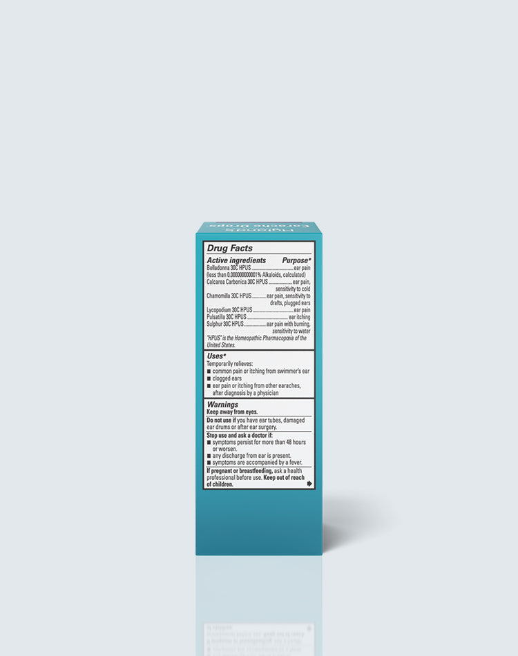 Hyland's Earache Drops provide homeopathic relief of pain or itching from swimmer's ear, clogged ears, and ear pain or itching from cold, flu, & allergies, all with no alcohol, no numbing, and no sting¹.