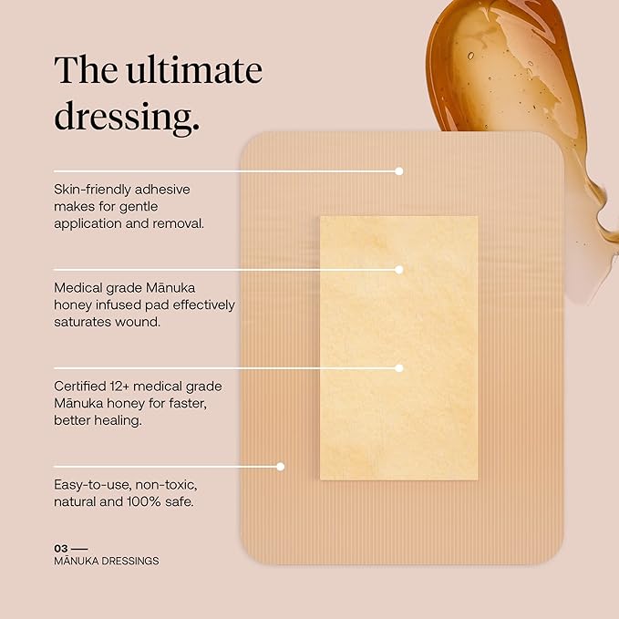| Stays-in-Place Latex-Free Bandages with Skin-Friendly Adhesive | It’s important to keep out bacteria and prevent your wounds from becoming infected, which is why we created our Manuka Honey Bandages to stay in place with our skin-friendly adhesive.