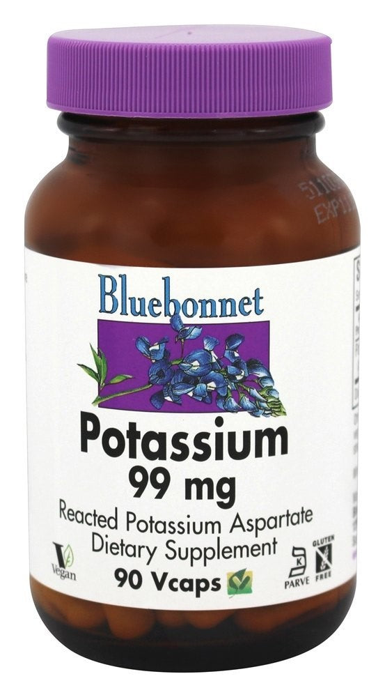 Made with Non-GMO IngredientsMay Support: Electrolyte BalanceDietary SupplementVeganKosher ParveGluten FreeBluebonnet's Potassium 99 mg Vegetable Capsules are formulated with reacted potassium aspartate. Potassium is an essential mineral required to support electrolyte balance.Minerals are shown in their elemental value.