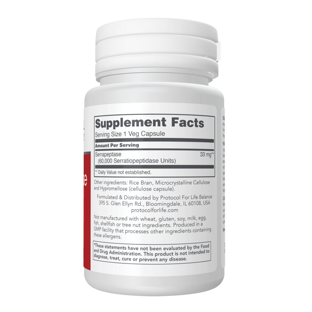 Serrapeptase (serratiopeptidase) is a protein-digesting enzyme isolated from the friendly bacterium Serratia marcescens.* Studies indicate that serrapeptase is absorbed intact from the digestive tract and that it acts systemically to support healthy immune system functions and promote the body's normal healing processes.* Some evidence suggests that serrapeptase may support respiratory health by helping to maintain normal mucus secretions.*